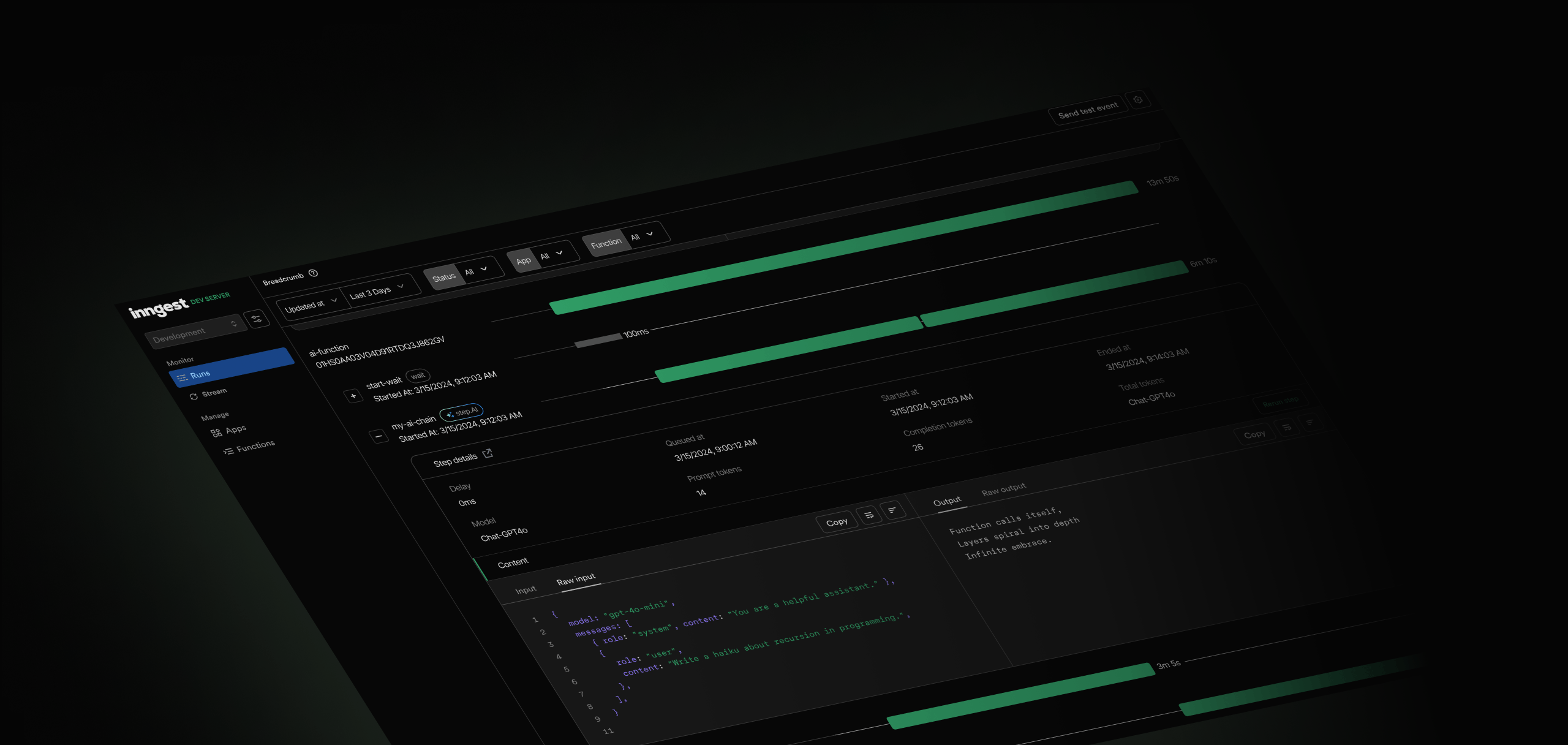 We're building the APIs and tools with the DX you expect from Inngest to help you build the most reliable, production-ready AI applications.